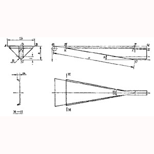 象鼻成型器可看作是在U型成型器的设计基础上,结构方面作了一些修改而形成的,它的安装角α比三角形及U型成型器都要小得多,它的成型阻力比较小,而制同样的一个袋,成型器结构尺寸倒要大得多。象鼻成型器设计时建议按α=5°~12°选用三角形板的安装角,并计算三角形顶角2β值,根据所制作空袋袋宽a计算三角形板的高b。按U形成型器的设计方法找准圆弧槽装接位置L,并取用圆弧部分半径R=(0.1~0.2)a。.......