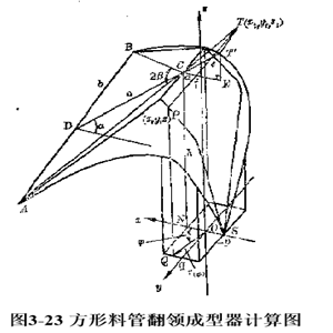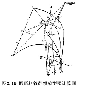 翻领成型器具有内外曲面,薄膜与它相对运动时,可强制薄膜按其内外曲面形状变成。使平张薄膜逐渐卷曲成圆筒状,要求该成型器在拉膜时使薄膜不产生纵向与横向拉伸变形,而且使薄膜与成型器之间的摩擦阻力尽量小,不跑偏、不卡塞,制出外形平整美观,符合尺寸要求的袋。 以加料管截面形状不同可分为圆形及方形截面料管的翻领成型器。这里介绍用解析作图法作成型器领口交接曲线的方法,一但有了领口交接曲线,无.......