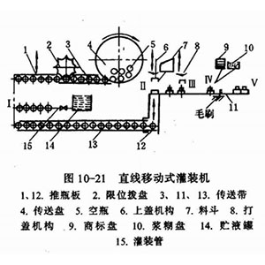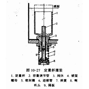 常用的灌装方法有常压、等压、负压、虹吸及机械压力式等五种。 (一)常压灌装 又称自重灌装或液面控制定量灌装。在常压下,液体依靠自重从贮液箱或计量筒中流人容器的一种灌装方法,其基本工作原理见图10-26。 当容器上升碰到灌装阀4并压缩弹簧2时,使瓶口密封,同时打开碟阀5的阀门,于是液体由于自重沿排气管6的外壁与碟阀5之间的周围缝隙流人容.......