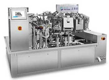 给袋式包装机也就是以旋转给袋式进行产品包装的设备,能够实现全自动化的包装。大约替代了6个人左右的工作量,且效率与包装质量更高于人工。成本减少,效率提升。生产企业获益或许不仅仅是标题说的那一半。 全自动真空包装机包括:工作平台、控制单元、显示屏、自动输送袋子机构、自动上袋机构、自动夹袋机构、自动打码机构、自动开袋机构、自动灌袋机构、自动清理袋子口机构、自动加热封口机.......