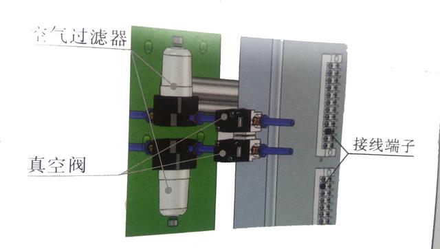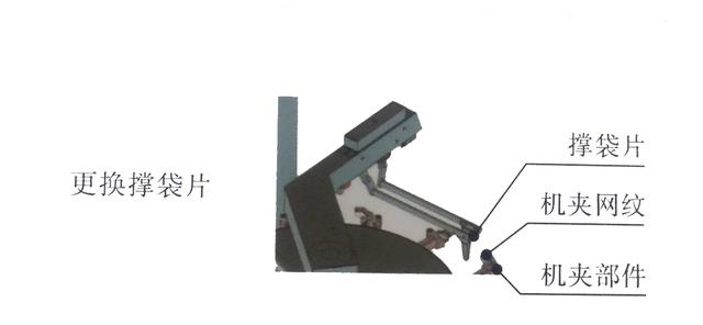 吹气清理装置----为避免袋口污染导致热封不牢、歪斜(热合线与边线平行误差超过2.5mm)等情况,设备安装旋转吹气清理装置,通过四向(中间双侧45°角清除75%污物,两侧边角分别清除25%的污物,达到100%洁净)吹气管道,清理封口位置附着汤汁或物料粘稠物。外设遮罩,避免杂物外溅,干净整洁。清理完成后,包装袋经首次拉着处理,由转接凸轮组带动送袋转臂传送,过程中由和夹凸轮夹持袋口避免褶皱,将包装袋转入真空腔体内,进行真空和封口。