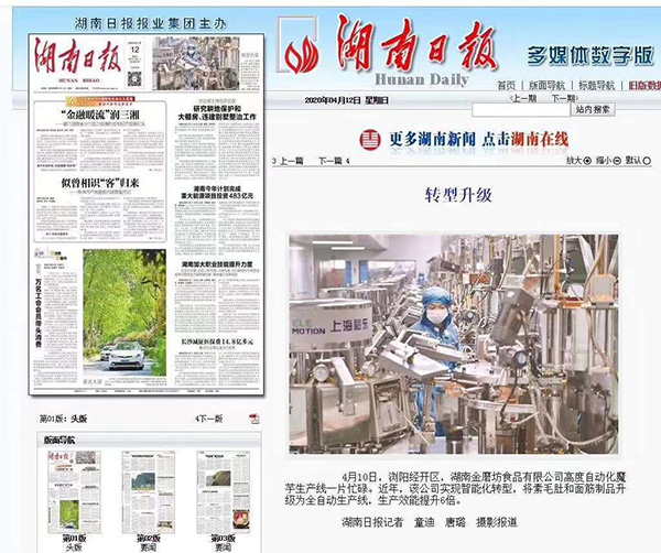 4月10日,浏阳经开区,湖南金魔坊食品有限公司高度自动化魔芋生产线一片忙碌。近期,该公司实现智能化转型,将素毛肚和面筋制品升机为全自动生产线,生产效能提升6倍。