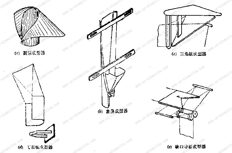 常用的成型器有翻领成型器、象鼻成型器、三角成型器和U型成型器等。如图3.15所示,在结构、性能上大体有如下一些特点: