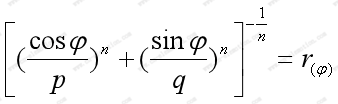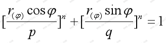 这里设:短半轴为p,长半轴为q,半径为,超椭圆图形上任一点Q的极坐标: