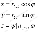 用极坐标形式表示领口曲线上任一点p的位置: