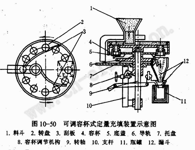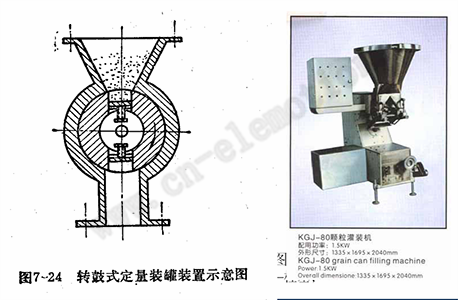 已知容量的量杯量取产品,量杯一般置于转盘和转鼓上,转盘较常见。