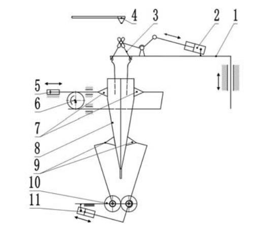 给袋式包装机中一般工业上采用的开袋机构多为吸盘吸附式开袋,这种开袋机构可以有很多种动力传动机构。对于 PET/AL/CPP 复合薄膜袋这样的预制袋,他们的两层薄膜在袋口处的贴合性很好,一般的机械式开袋机构并不容易实现开袋,因此采用了真空吸盘式开袋机构,能顺利、准确地打开袋口。图为开袋与撑袋机构示意图。