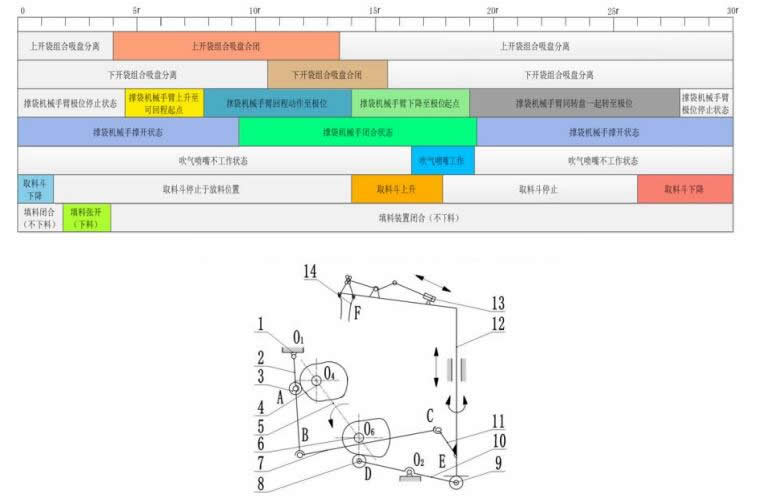 给袋式包装机撑袋机构装置及相关的运动控制时序图