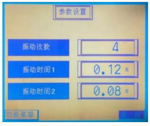 1)点击参数设置界面,界面显示如下图所示,设置相关参数。振动次数指在一个动作内振动的次数,振动时间 1 指在一个动作内一次振动的时间,振动时间 2 指在一个动作内两次振动的时间。