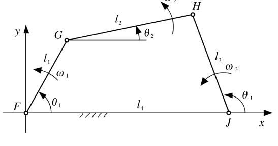 图1:双摇杆 FGHJ 机构的数学分析模型