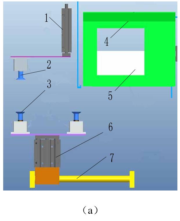 1 ) 无杆气缸运动到最右端,使取袋吸盘位于袋库的正下方。