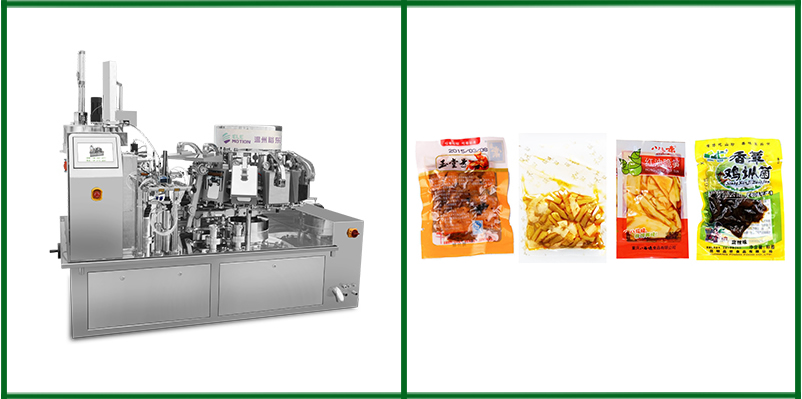 给袋式真空包装机的收缩杯下料器是一种最常用的下料器之一,适用范围:酸笋、酸豆角、辣子鸡、豆干、素毛肚、牛板筋、牛肉条、鱿鱼片、鱼块、魔芋爽、鸡枞菌等产品,主要形态以耐挤压、易切断小规格克重固形物为主,实现全自动量杯计量,实现自动计量,接着给袋式真空包装机实现自动装袋、抽真空封口。因产品的形态不同,公司的收缩杯下料器量杯根据物料实际克重而定制。一全套全自动给袋式真空包装机可以配多套不同形态的量杯,通用性非常强。YD1014-1018全自动给袋式真空包装机每分钟可达100-110包。详情请查看: