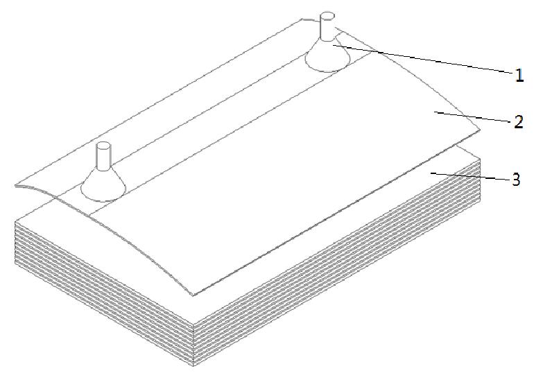 1-真空吸盘; 2-预制袋; 3-袋堆