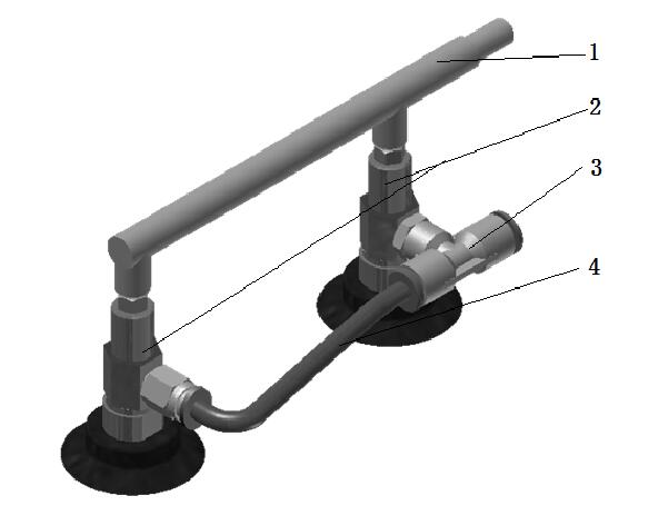 1-摆杆; 2-最小动程真空吸盘; 3-三通接头; 4导气管