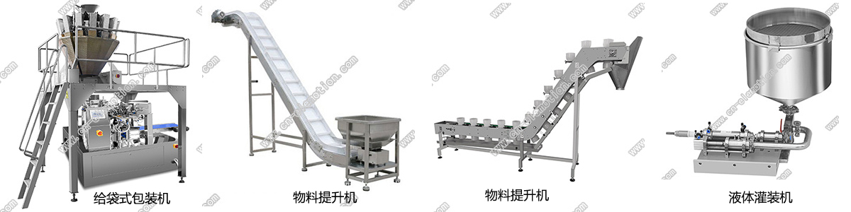 方案二:给袋式包装机+多头电子秤+物料提升机+液体灌装机