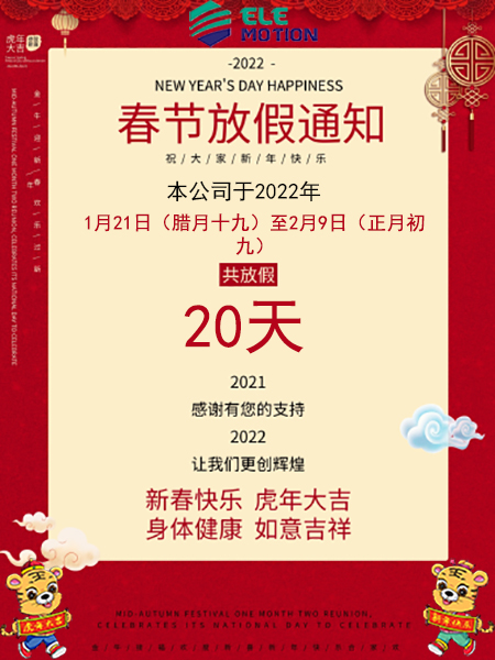 我司定于2022年1月21日开始放假,2022年2月10日(正月初十)报道,2月11日(正月十一)正式上班。请各部门主管组织好假前安全、卫生清洁检查,并做好防火排查工作。