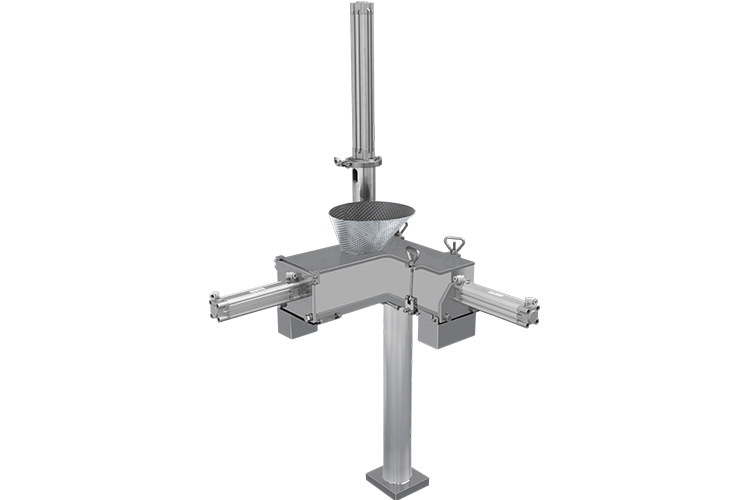 三推下料器,顾名思义是指有三个方面对物料有推压的下料器。通常适用于一些抛货或物料偏大产品,由于袋子偏小,在正常下料的情况下,容易堵袋口,导致自动封口出现异常。