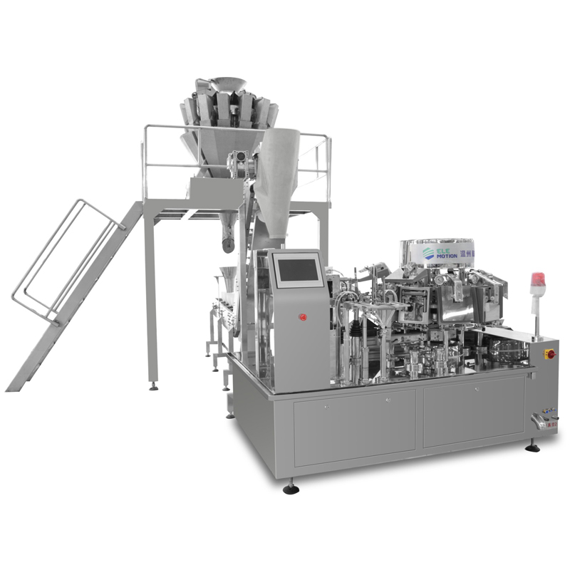3、梅菜包装机操作方便,采用先进的机械传动系统,实现自动取袋、自动称量、自动装料、自动抽真空、自动封口、自动卸料。