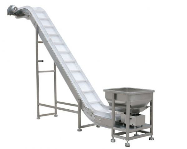 大倾角提升机适用于带水份的颗粒状物体,如牛肉丸、鱼丸、牛杂等产品,使用完之后冲洗方便。