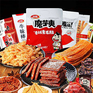 灯影牛肉丝、炭烤小香肠、川辣牛肉、香辣小鱼、泡椒凤爪、卤味凤爪、手撕鱿鱼条、鹌鹑卤蛋、鱼豆腐、牛板筋、辣条火锅