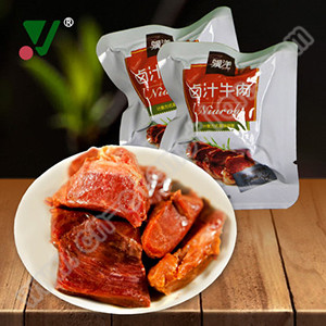 经过江南游戏网址 多年对包装机的研究,终于研发出了针对卤牛肉等休闲食品的给袋式真空包装机,该设备操作方便,采用先进的机械传动系统,实现自动取袋、自动称量、自动装料、自动抽真空、自动封口、自动卸料,在很大程度上减少了人工管理成本,增加了产能。
