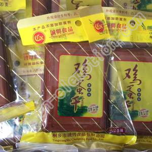 鸡蛋干是一种食物,制作原料有鸡蛋、白砂糖、食用盐等。它是以鸡蛋为原料的新食品,将鸡蛋全蛋浓缩加工而成。其口感和价值远高于传统豆腐干,同时也没有传统豆腐干的原料--大豆,细细品尝会有纯正蛋白味且口感鲜嫩。产品营养价值高,含有丰富的优质蛋白质,独立真空小包装干净卫生且轻便易携带,是新时尚休闲零食;和传统豆腐干一样,也可以烹饪出各种创新菜,如凉拌鸡蛋干、鸡蛋干烩时蔬等。