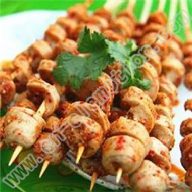 烤面筋是将面筋经过炭火烘烤,加以孜然、辣椒等调料即成。