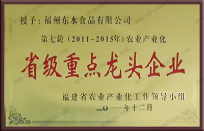 因先进的技术,科学的管理,企业通过了欧盟注册、ISO9001质量管理体系认证和HACCP食品安全管理体系认证,并先后取得“奥运餐饮供应企业”、“福建省农业产业化省级重点龙头企业”、“福建省著名商标”、“福建省进出口诚信企业”等荣誉称号。