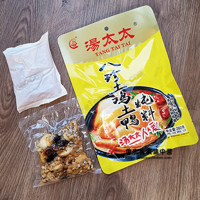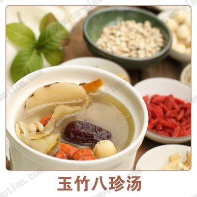称为“八珍汤”这道菜,早在古代周朝的菜谱上已有记载。其后,各朝代创造了各种:“八珍”。“八珍”是使用不同的八种药材烹调出来的珍贵菜肴的总称。这里的八珍把八种贵重药材合在一起,加入鸡、鸽子、鸭、瘦猪肉、猪蹄、猪肚或羊肉、鹿肉等其中的一种或数种,放入水,酒而熬成的,是一种食疗佳品。在家庭中,可根据家庭成员,身体健康状况,在中药店选购药材,配制食用。