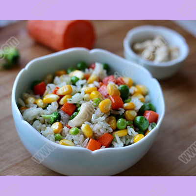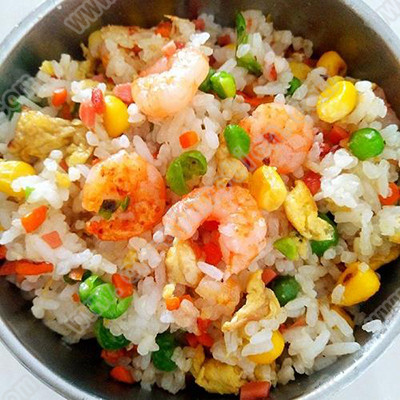 什锦炒饭是一道色香味俱全的名点,以江苏扬州的炒饭最知名。虾仁去泥肠洗净,加料酒、胡椒粉、淀粉上浆。胡萝卜洗净,切小片。蘑菇洗净、切块。将虾仁、豌豆粒、蘑菇倒入沸水锅中,焯烫至断生,捞出沥水。炒锅中加入少许食用油,放入胡萝卜片煸炒片刻,再放入虾仁、豌豆粒、蘑菇加盐、鸡精、胡椒粉炒匀,接着倒入熟米饭搅拌均匀,盖锅盖焖3分钟后,即可盛盘。