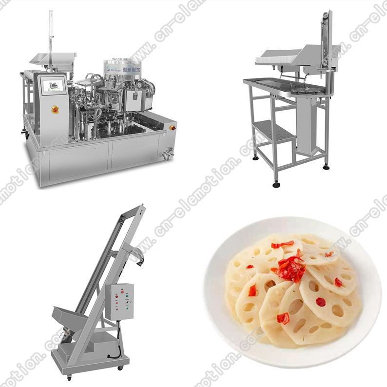 温州江南游戏网址研发的藕片给袋式真空包装机,可适用于藕片、鸡肫、粽子、压缩饼干、土豆片、土豆粒、兰花串、臭豆腐、黄花鱼、秋刀鱼、鸡腿、鸭脖、鸭掌、鸭舌、笋尖、鸡蛋干、豆干、拉丝蛋白、鱿鱼仔等产品,包装速度视产品特性而定。这款包装机配备的是环形下料器,主要结合人工投料的方式,可实现自动取袋、上袋、喷码、开袋、下料、清理袋口、拉平、抽真空、封口、卸料等全部包装流程,包装后的产品呈固定形态,美观大方,同时可以较大程度上保质保鲜,方便储存运输。一整套全自动给袋式真空包装机可以针对不同形态的产品配多套不同形态的量杯,通用性非常强。其轻便、操作简单、工作效率高、维护方便等特点深受客户好评。
