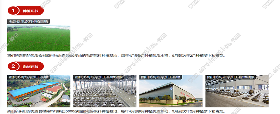 2011年2月,公司在渝北区大湾镇开工建设占地130亩的泡菜加工基地,一期工程总投资5500万元,于2012年11月竣工投产,总建筑面积21000平方米,年产优质泡菜25000吨。